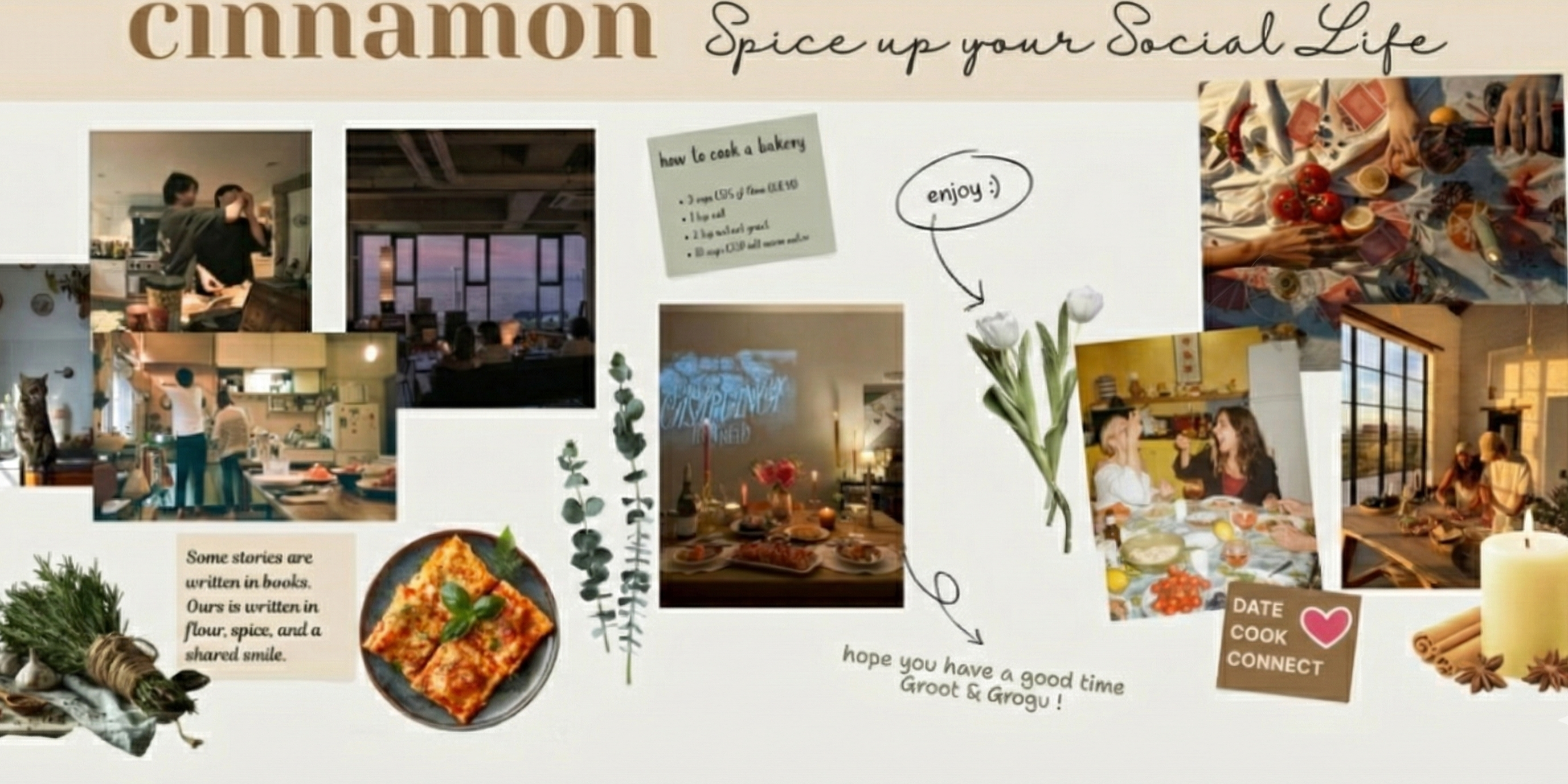 The Mission: To reverse the rising crisis of "Social Atrophy" among digital natives by building the missing infrastructure for meaningful human connection. The Detail: We are witnessing a paradox where hyper-connectivity has led to deep social isolation. In the Netherlands alone, 63% of young adults report feelings of loneliness (RIVM/CBS, 2022), creating a public health emergency that threatens both individual mental well-being (SDG 3) and community resilience (SDG 11). Cinnamon is a Sanctuary for Real Connections. Our mission is to build an Offline Culinary Oasis that replaces passive consumption (bars/cinemas) with Collaborative Play. By utilizing a guided, gamified culinary interface, we lower the barrier to face-to-face interaction, providing a structured environment where users rebuild their social skills. We exist to transform dining from a transactional necessity into a ritual of real connection, restoring the human fabric.